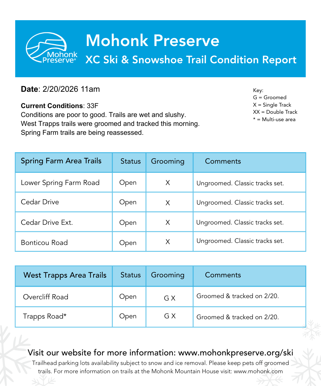 We are working with our partners to assist with maintaining the groomed trails and providing improved on-trail signage, external communications and friendly visitor interactions.
