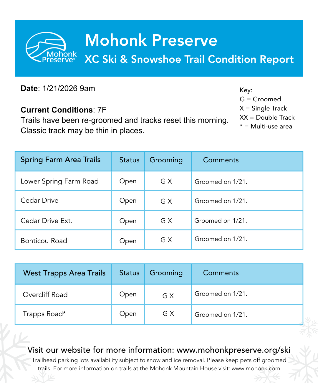 We are working with our partners to assist with maintaining the groomed trails and providing improved on-trail signage, external communications and friendly visitor interactions.