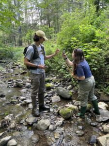 Volunteer community scientists are trained in specific data collection and naturalist observation protocols and conduct regular monitoring in these two watershed areas. StreamWatch data allow researchers and land managers to evaluate water quality, identify vulnerable or invasive species, determine the need for riparian buffers and changes to current agricultural practices, and inform future Mohonk Preserve projects.